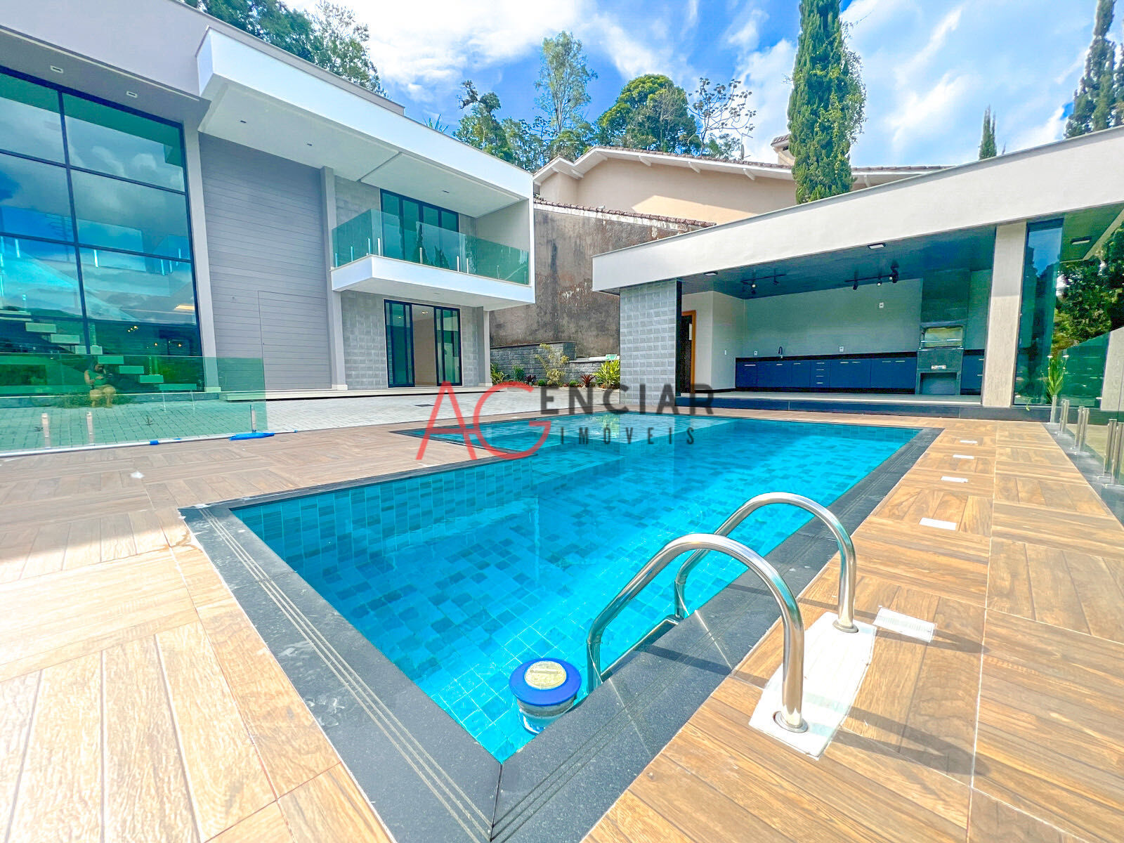 O imóvel é composto por uma ampla sala de estar com o pé direito duplo e moderno, cozinha com ilha integrada à sala, lavabo, suíte com closet (diferencial de ser adaptada para cadeirante), área de serviço com banheiro e academia toda em vidro.