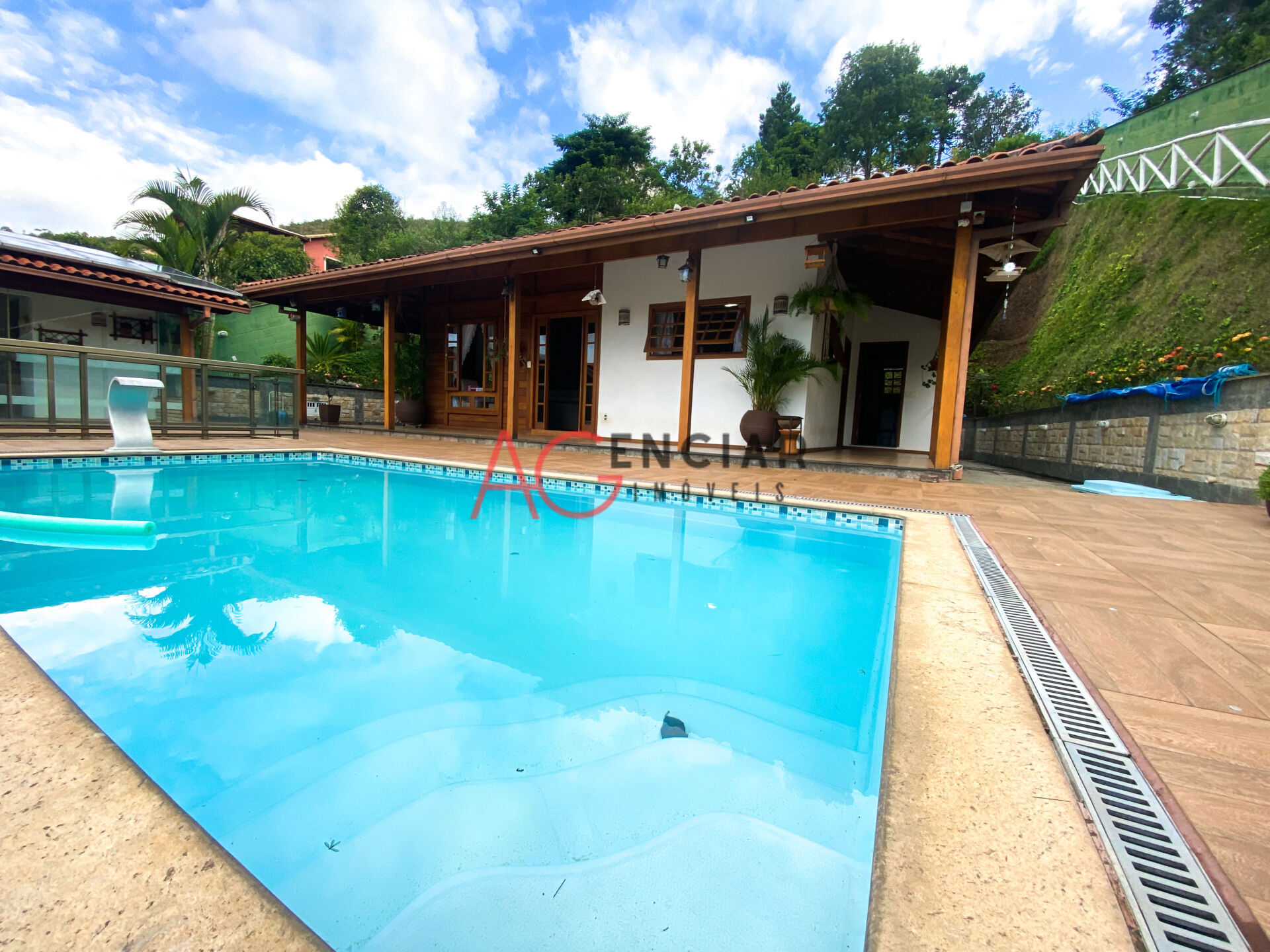 Maravilhosa casa rústica de madeira, estilo chalé na serra de Teresópolis, Rj com vista para as montanhas. Composta por dois quartos, sala com lareira, cozinha gourmet, dois banheiros, varanda gourmet com churrasqueira, sauna, piscina com vista para as montanhas e espaço verde com árvores frutíferas. Ambiente calmo, em meio a natureza, perfeito para quem busca paz e tranquilidade.